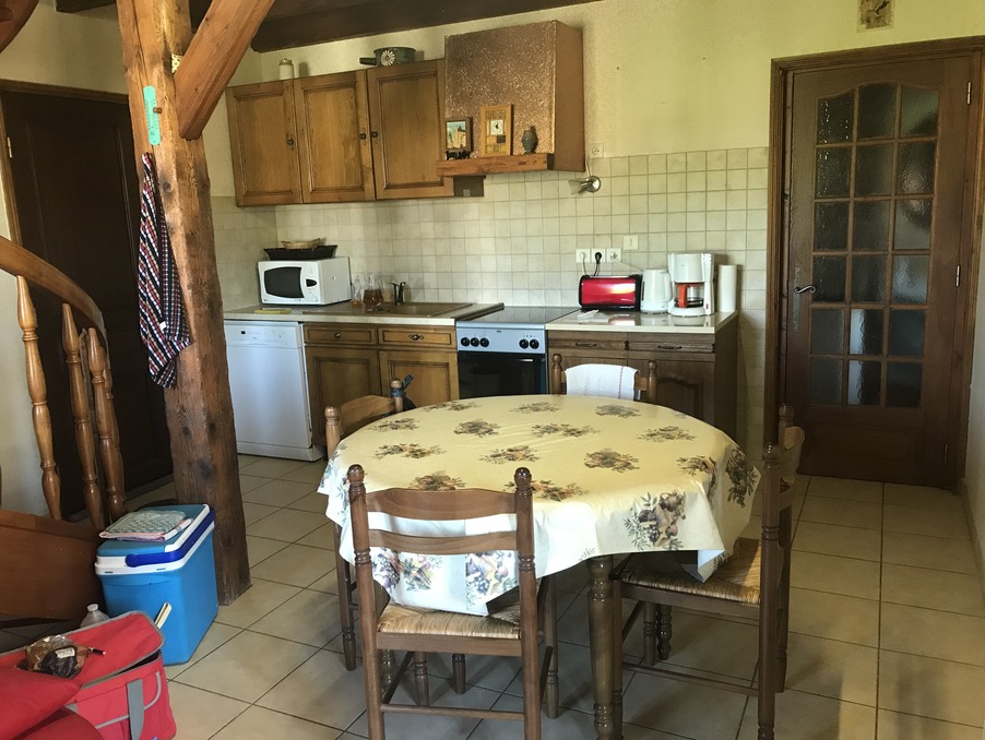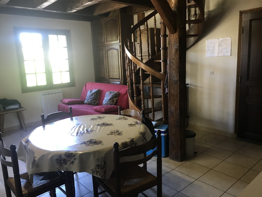 Il se compose d’ une pièce principale avec poutres apparentes avec un coin cuisine équipée et un coin salon.Wc.