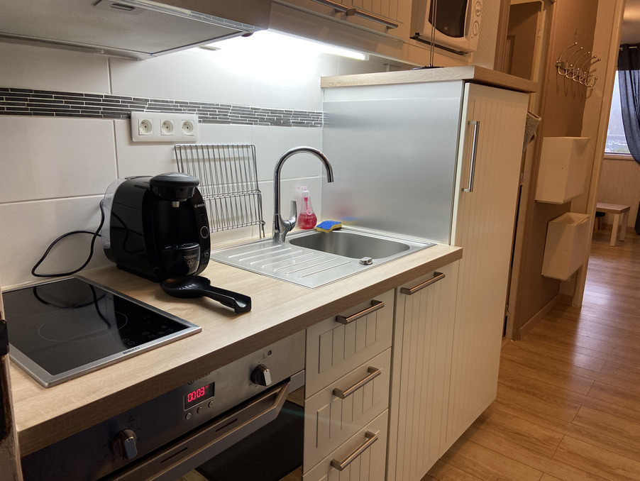 Superbe rénovation pour ce studio au pied des pistes, kitchenette, coin lit superposés fermé, salle d'eau avec douche et wc.