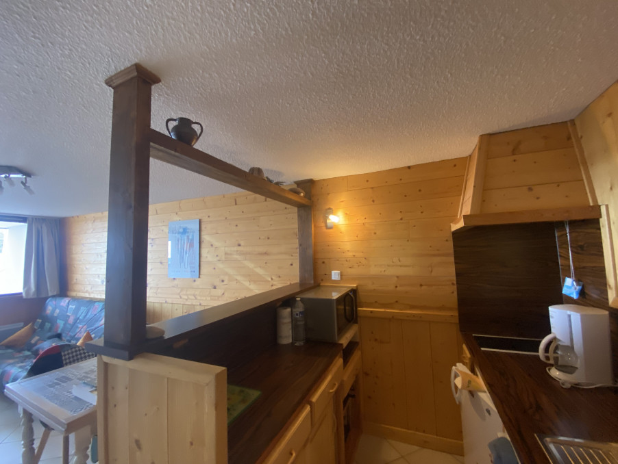 Séjour avec cuisine ouverte entièrement équipée et meublée.