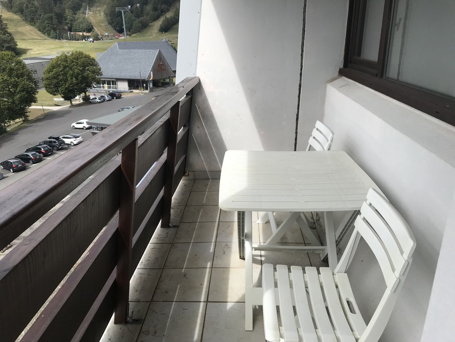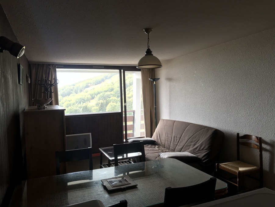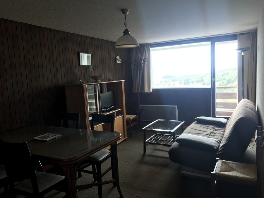 Séjour avec cuisine ouverte donnant sur le grand balcon. Vendu meublé, local à ski.