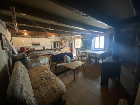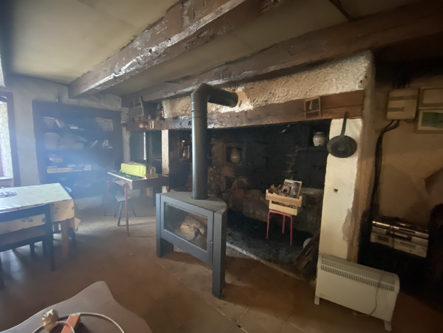 La maison comprend une pièce principale avec coin cuisine, séjour salon avec insert.
