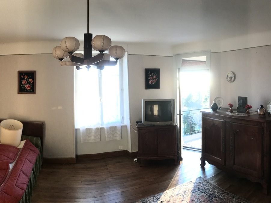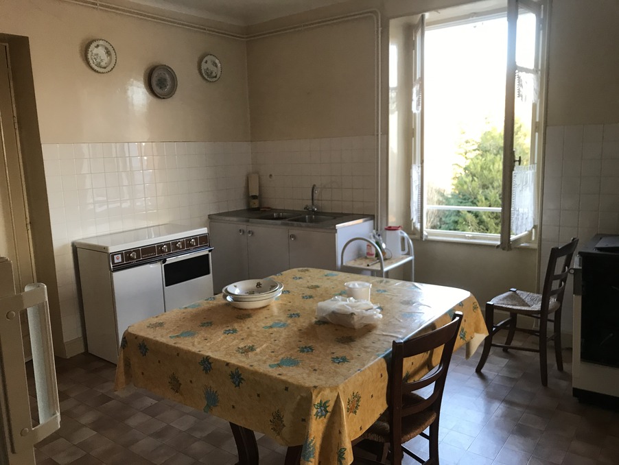 Sur les hauteurs, surplombant le village, grande maison implantée sur un hectare, elle se compose au rez de chaussée d' un appartement de type 3, premier étage : un appartement avec 3 chambres, salle d' eau.
