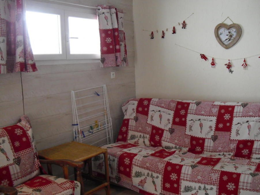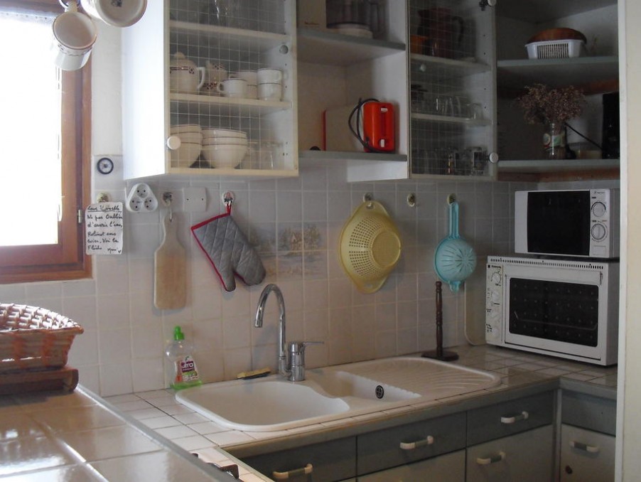 séjour avec cuisine ouverte - salle de bains - une chambre et coin couchage sous les combles.
